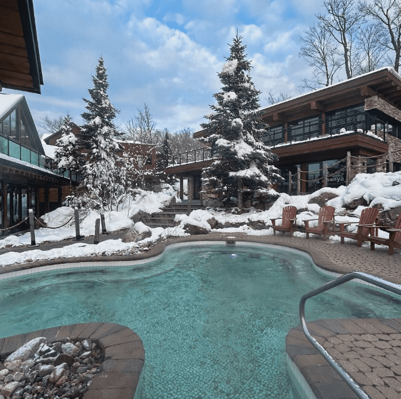 Located in Piedmont, Quebec, near the Simon River, this Scandinavian spa features saunas, steam baths, and outdoor hydrotherapy pools with views of the Laurentian Mountains. Open year-round, it offers Swedish massages, hot stone therapies, and a chance to unwind amidst nature.
