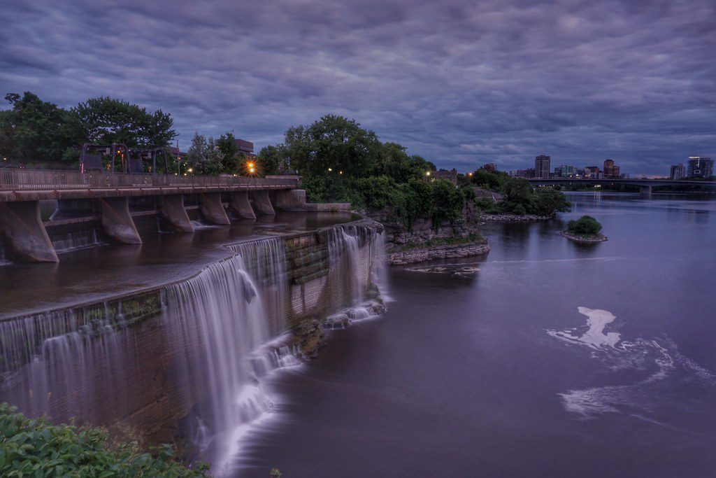 Первым европейцем, увидевшим, как она впадает в реку Оттава, стал Самуэль де Шамплен. Его вдохновила эта красота, он назвал реку Ридо. В переводе с французского это означает «занавес».